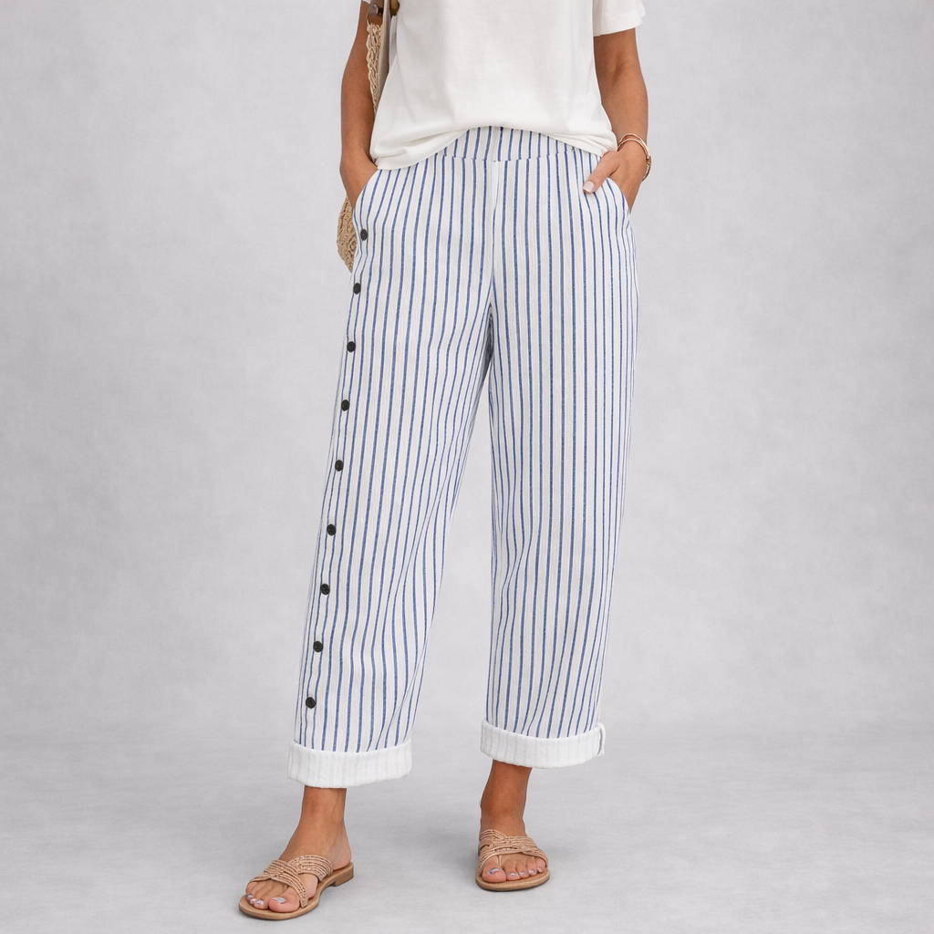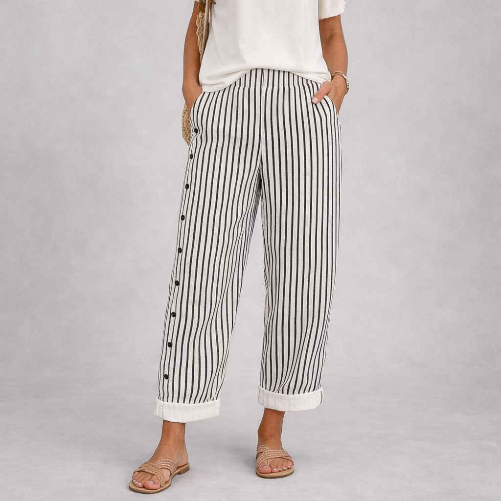 Caitlin | Stylové pruhované kalhoty s knoflíky