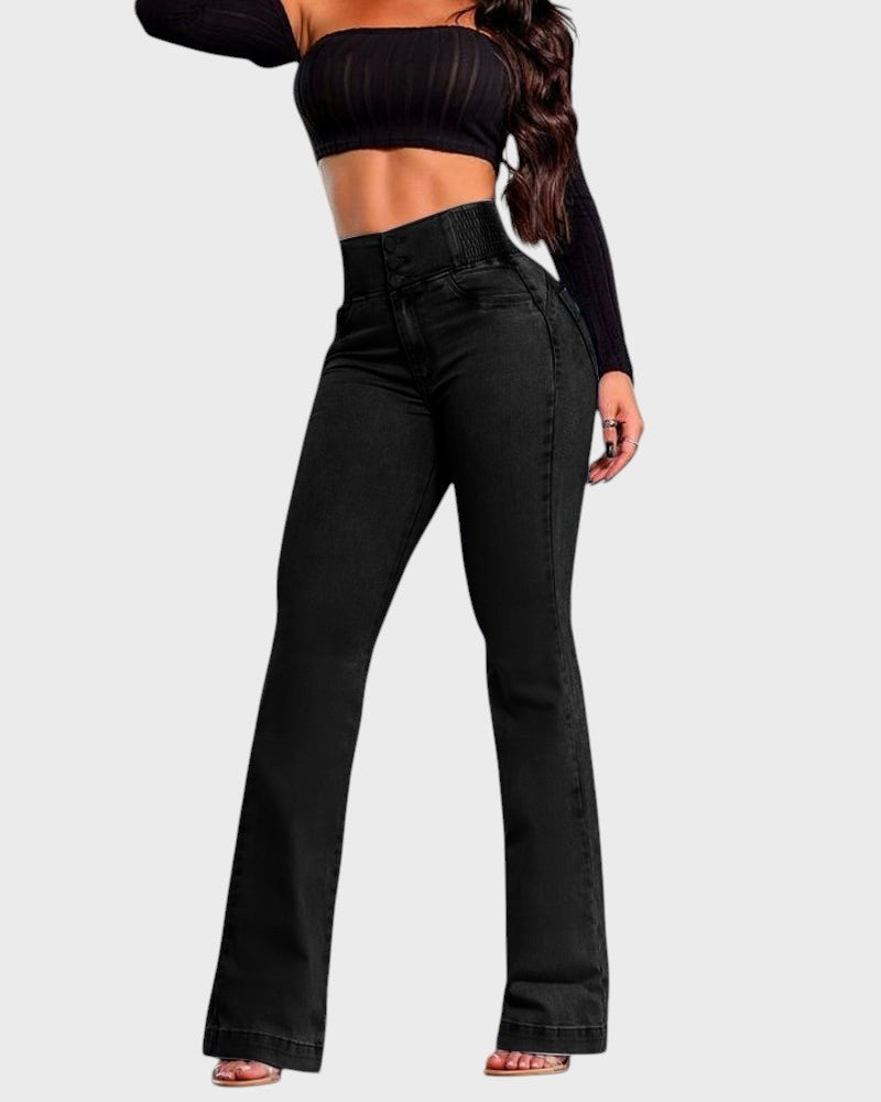 Střih: High Waist / Bootcut Flare (Vysoký pas / Zvonové nohavice)